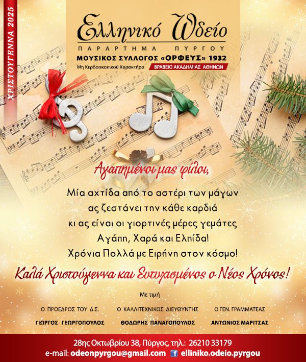 Η Κοινότητα Μέλισσας σε συνεργασία με το Δήμο Ανδραβίδας Κυλλήνης, σας προσκαλεί σε μια ζεστή, Χριστουγεννιάτικη γιορτή γεμάτη Φως, χαρά και