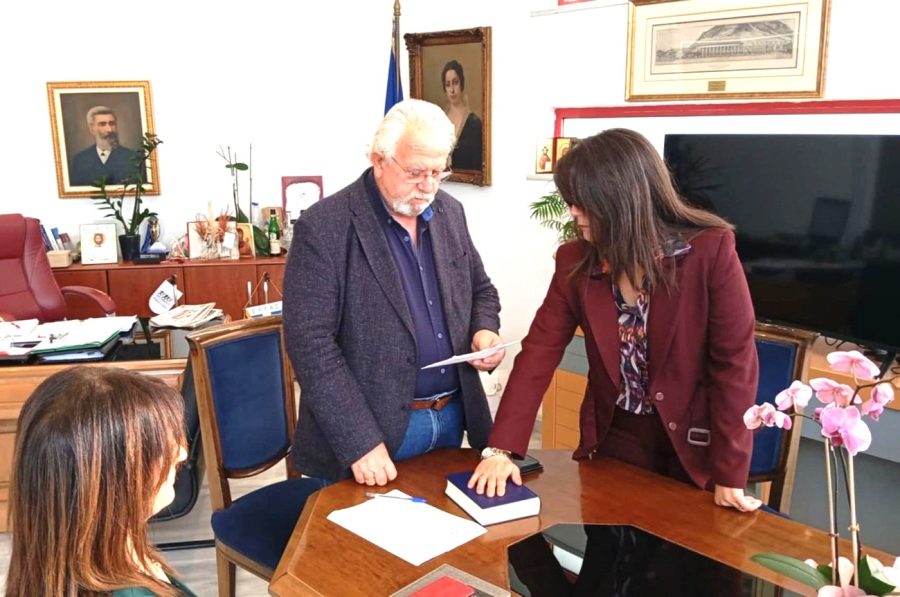 Η νέα μόνιμη διοικητική υπάλληλος που προστέθηκε στο δυναμικό του Δήμου Ήλιδας ΟΡΚΙΣΤΗΚΕ ΕΝΩΠΙΟΝ ΤΟΥ ΔΗΜΑΡΧΟΥ ΧΡΗΣΤΟΥ ΧΡΙΣΤΟΔΟΥΛΟΠΟΥΛΟΥ