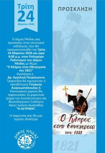 ΕΚΔΗΛΩΣΗ ΤΟΥ ΔΗΜΟΥ ΗΛΙΔΑΣ ΜΕ ΜΙΑ ΣΗΜΑΝΤΙΚΗ ΟΜΙΛΙΑ ΚΑΙ ΕΠΕΤΕΙΑΚΟΥΣ ΧΟΡΟΥΣ ΑΠΟ ΤΗΝ ΥΠΕΡΟΧΗ *ΑΣΤΡΙΝΙΑ* /// ΑΥΡΙΟ ΤΡΙΤΗ 24/3 ΣΤΗΝ ΑΜΑΛΙΑΔΑ ΓΙΑ ΤΗΝ ΕΠΕΤΕΙΟ ΤΗΣ ΕΘΝΙΚΗΣ ΜΑΣ ΠΑΛΙΓΓΕΝΕΣΙΑΣ /// Η ΟΜΙΛΙΑ ΤΗΣ Δρος ΑΓΓΕΛΙΚΗΣ ΠΕΤΡΟΓΙΑΝΝΗ ΕΧΕΙ ΘΕΜΑ : *Ο ΚΛΗΡΟΣ ΣΤΗΝ ΕΘΝΕΓΕΡΣΙΑ ΤΟΥ 1821* ΩΡΑ 8 ΤΟ ΑΠΟΒΡΑΔΟ