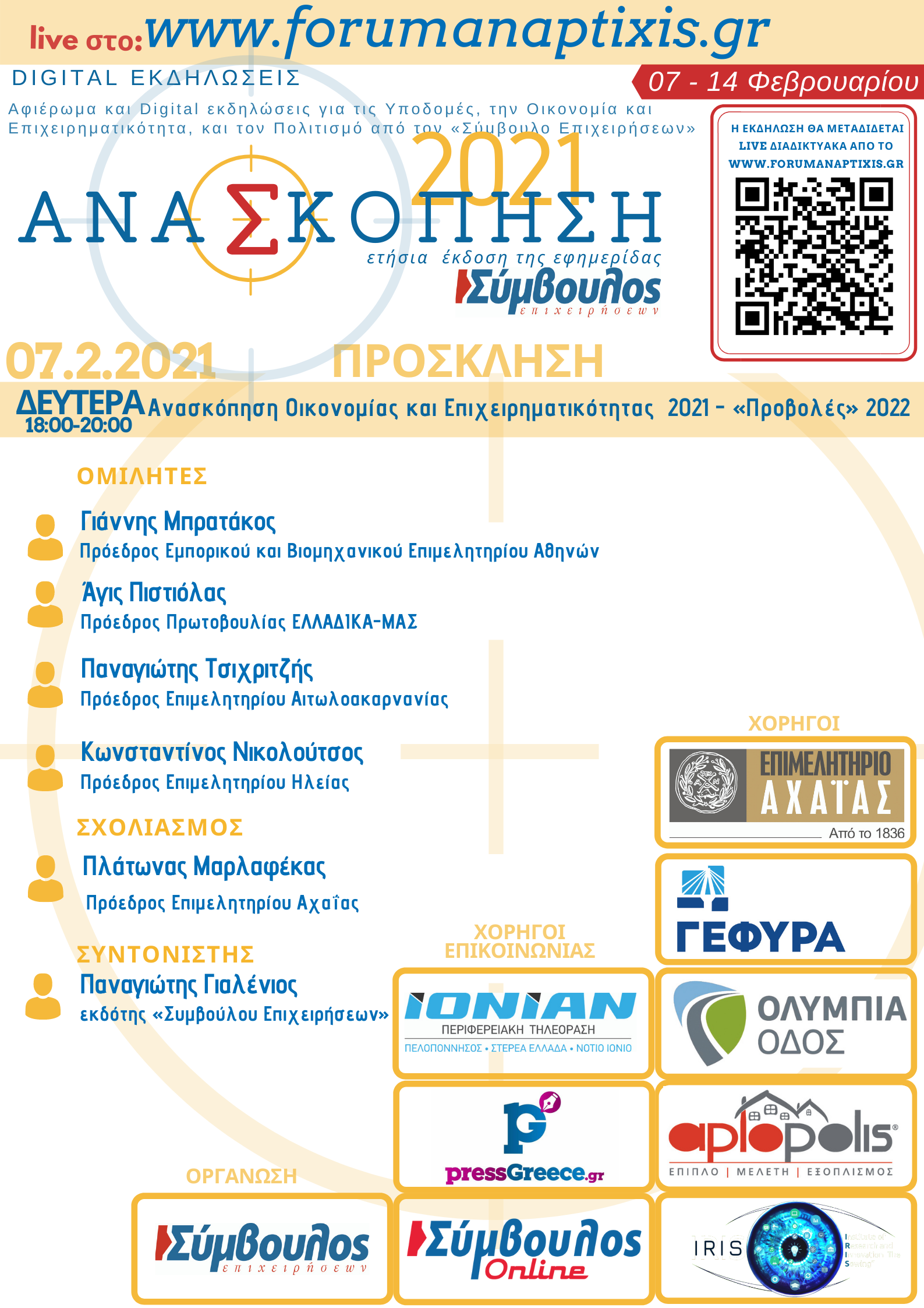 DIGITAL ΕΚΔΗΛΩΣΕΙΣ Σήμερα 7 Φεβρουαρίου 2022 Ανασκόπηση Οικονομίας και Επιχειρηματικότητας για το 2021 και <<προβολές>> για το 2022 ΜΕΤΑΞΥ ΤΩΝ ΟΜΙΛΗΤΩΝ