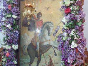 Η θρησκευτική λειτουργία ανήμερα της εορτής του τροπαιοφόρου Αγίου Γεωργίου πραγματοποιήθηκε την Πέμπτη 23 Απριλίου 2026, χοροστατούντος του πρωτοπρεσβύτερου ιερέα π. Νικολάου Καραμέρου, επί δεκαετίες ιερέα του Λάλα. Έλαβε χώρα επίσης αρτοκλασία με πεντάρτους και εκτός Ναού το λεγόμενο <<τρέξιμο της Κουλούρας>> και θα εξηγήσουμε πιο κάτω τι σημαίνει αυτό. Ο αγαπητός ιερέας τέλεσε και επιμνημόσυνη δέηση και αναφέρθηκε στους πεσόντες της μεγάλης μάχης στο Πούσι και στον κτήτορα του ναού. Επίσης στο τέλος της λειτουργίας αναφέρθηκε και στην παρουσία στο χώρο πνευματικών ανθρώπων.