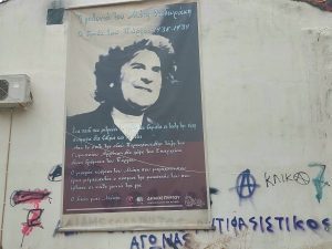 Το μεγάλο πανό με τη φωτογραφία του Μίκη και τα λόγια που το πλαισιώνουν κοσμεί τώρα την πίσω επιφάνεια κτίσματος ευρισκόμενου εντός της πλατείας που φέρει το όνομα του μεγάλου μας μουσουργού Μίκη Θεοδωράκη, που πριν λεγόταν πλατεία Νικάκη.