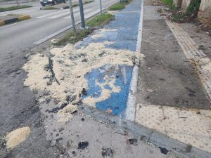 Ένεκα του ξηλώματος του φωτιστικού στύλου και της απογύμνωσης των ηλεκτροφόρων καλωδίων της τσιμέντινης βάσης που διαλύθηκε, ο οδοφωτισμός της Κατακόλου δεν λειτούργησε το βράδυ της Κυριακής.