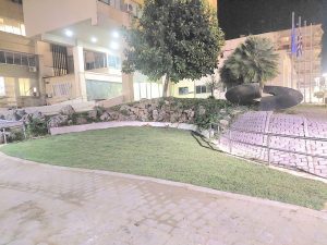 Εκεί που ήταν παλαιότερα ένα μικό συντριβανάκι που πέρασε της <<ψυχής>> του τον τάραχο και είχαμε γράψει, τώρα τα ελώδη στεκάμενα νερά απομακρύνθηκαν και το κενό έκλεισε με χώμα, όπου τοποθετήθηκε γκαζόν, που που αποδίδει μία αισθητική στο χώρο, όπου το Διοικητήριο της Π.Ε. Ηλείας.