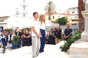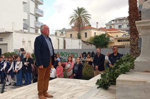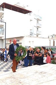 Ακολούθησε η κατάθεση στεφάνων από εκπροσώπους των δύο σχολείων, ενώ στη συνέχεια κατατέθηκαν στεφάνια από το σύνολο των εκπαιδευτικών φορέων της πόλης.