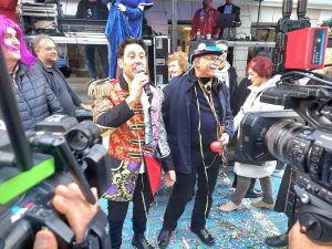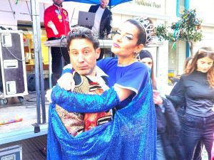 Άλλο ένα τρυφερό ενσταντανέ της αισθησιακής Βασίλισσας του Πυργιώτικου Καρναβαλιού με τον χαριέστατο παρουσιαστή και εκλεκτό καλλιτέχνη Λευτέρη Ελευθερίου.