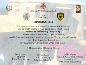 Την Κυριακή 7 του Δεκέμβρη 2025 και ώρα 10 το πρωί θα γινουν τα αποκαλυπτηρια του Μνημείου