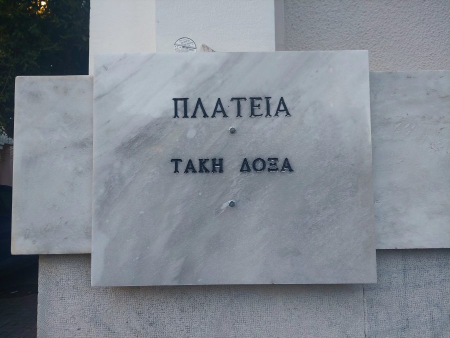 Από τούδε και στο εξής επισήμως πλέον η Πλατεία Τάκη Δόξα Ο ΔΗΜΟΣ ΠΥΡΓΟΥ ΤΟΠΟΘΕΤΗΣΕ ΣΗΜΕΡΑ ΤΗΝ ΜΑΡΜΑΡΙΝΗ ΠΙΝΑΚΙΔΑ