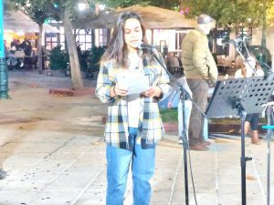 Το πρόγραμμα περιελάμβανε και τραγούδια του αγώνα που απέδωσαν εξαιρετικά δύο εκπαιδευτικοί, που είναι και ζευγάρι στη ζωή, ο Κωστής Παππάς (κιθάρα & τραγούδι) και η Καλλιόπη Πυριόχου (τραγούδι). Στο αρμόνιο ο καταπληκτικός Φώτης Παπαθεοδώρου.