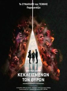 Πήγα στον Πολυχώρο Πολιτισμού του Δήμου Ήλιδας στην Αμαλιάδα και παρακολούθησα την θεατρική παράσταση, από το νεότευκτο Συνδικάτο της Τέχνης, του αριστουργηματικού έργου του Γάλλου φιλόσοφου, από τους βασικούς εκφραστές του φιλοσοφικού ρεύματος του Υπαρξισμού, και σπουδαίου συγγραφέα Ζαν Πωλ Σαρτρ <<Κεκλεισμένων των θυρών>>.
